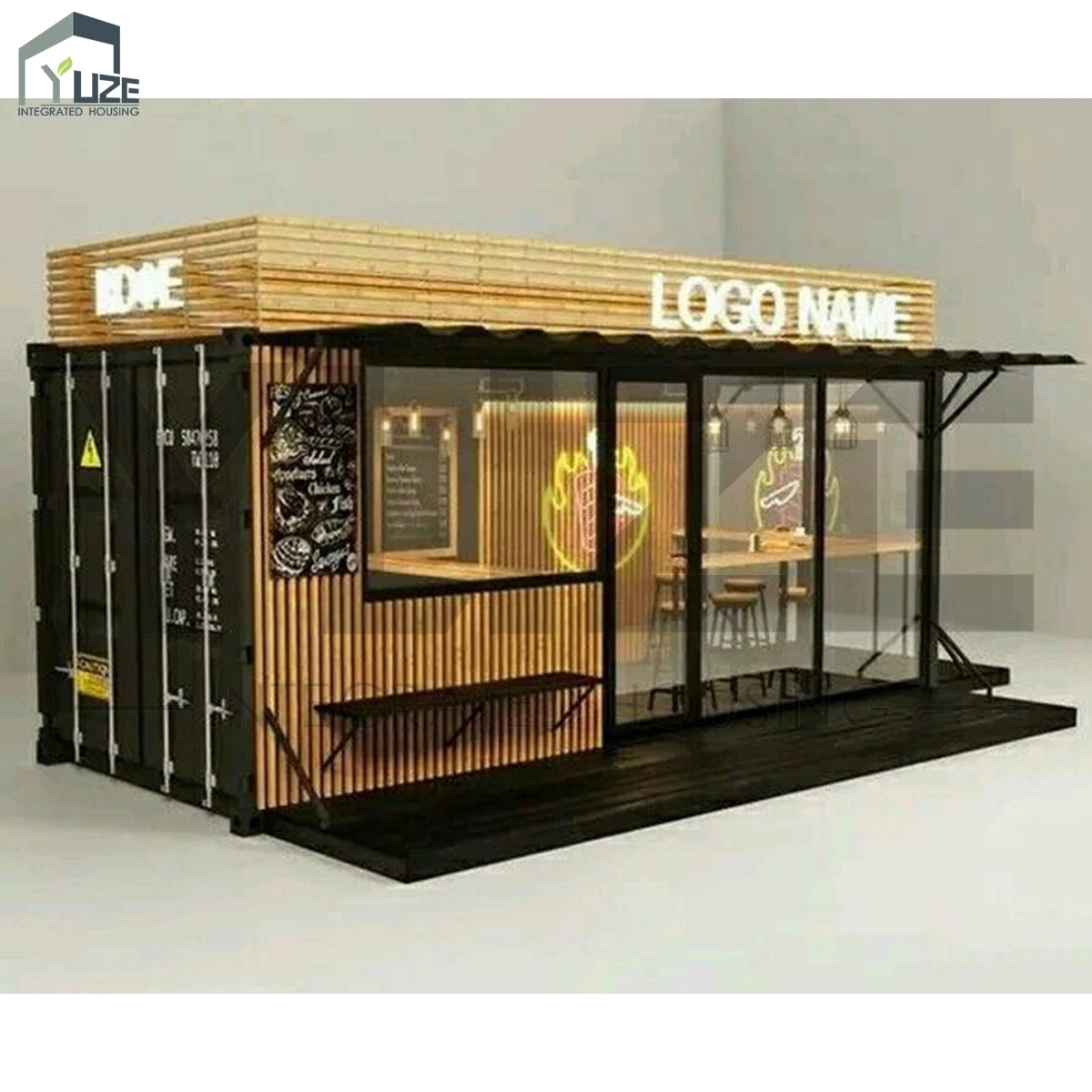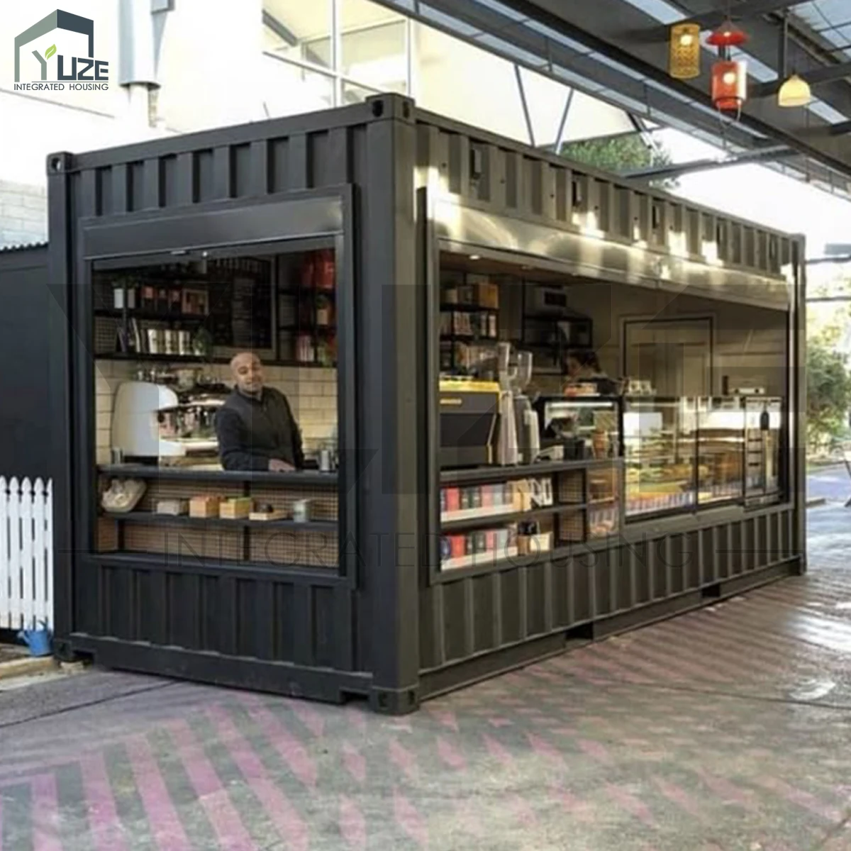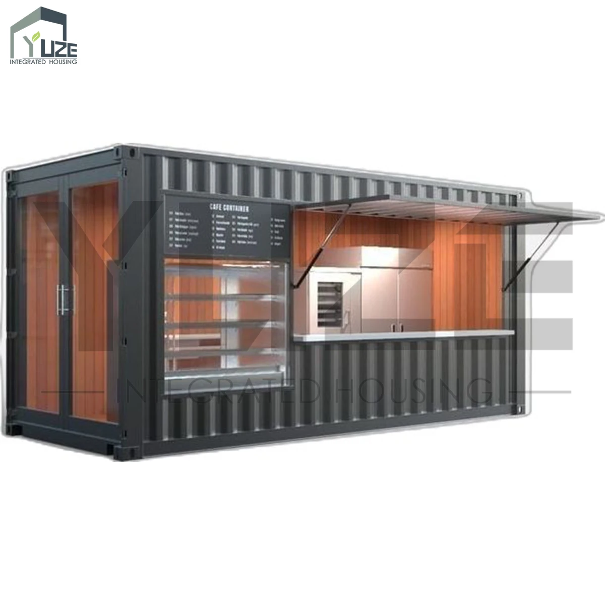 Commercial Prefabricated Houses Modular Portable Container Coffee Kiosk Shop with Canopy Roof Design