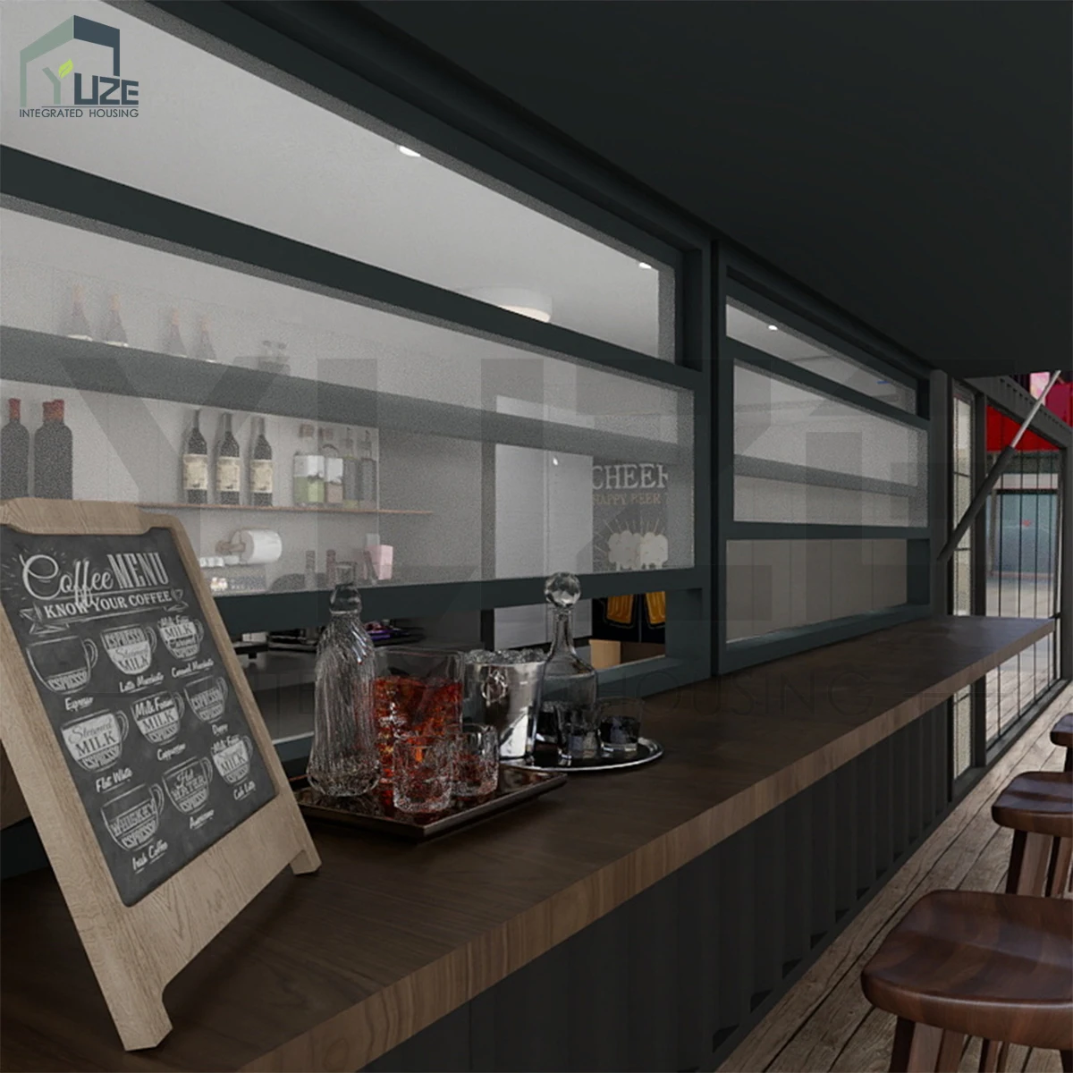 Durable Steel Structure 40FT Modern Commercial Modular Shipping Container Bar Solution with Indoor Seating