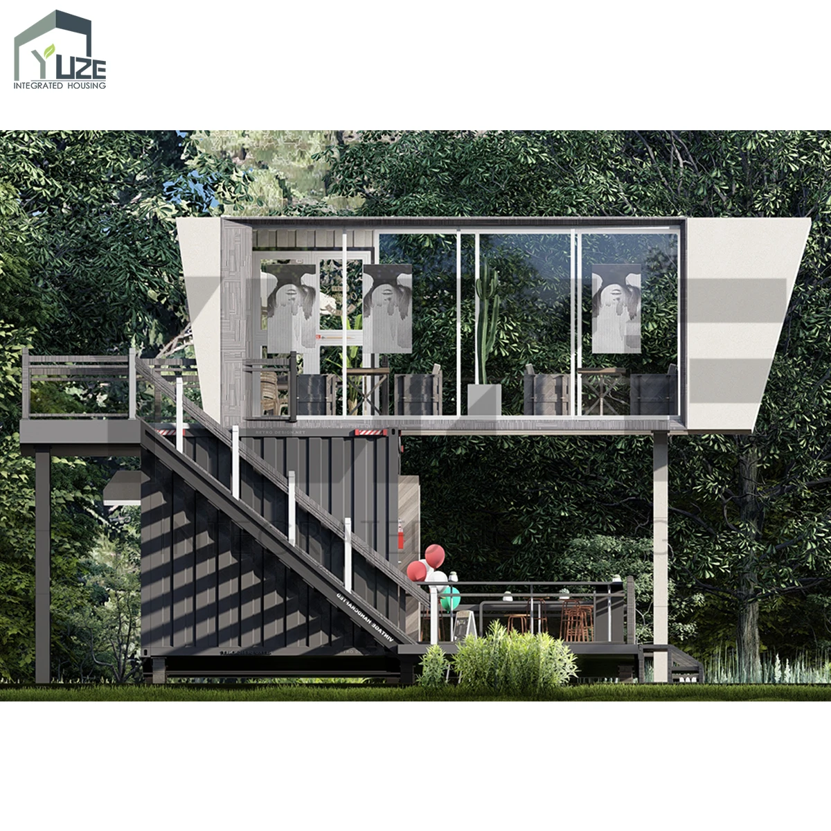 Prefabricated Two-Story Futuristic Steel Container Restaurant with Kitchen manufacture